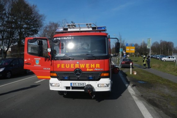 Einsatzbericht: Nach einem Verkehrsunfall wurde der Dienstbetrieb zum Ostring alarmiert. Aus dem verunfallten PKW trat eine kleine Menge Betriebsstoffe aus, die durch die Feuerwehr abgestreut wurden.