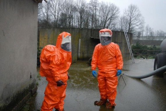 Einsatzbericht: Lokale, geringfügige Produktfreisetzung. Kontrolle durch die Feuerwehr, keine weiteren Maßnahmen.