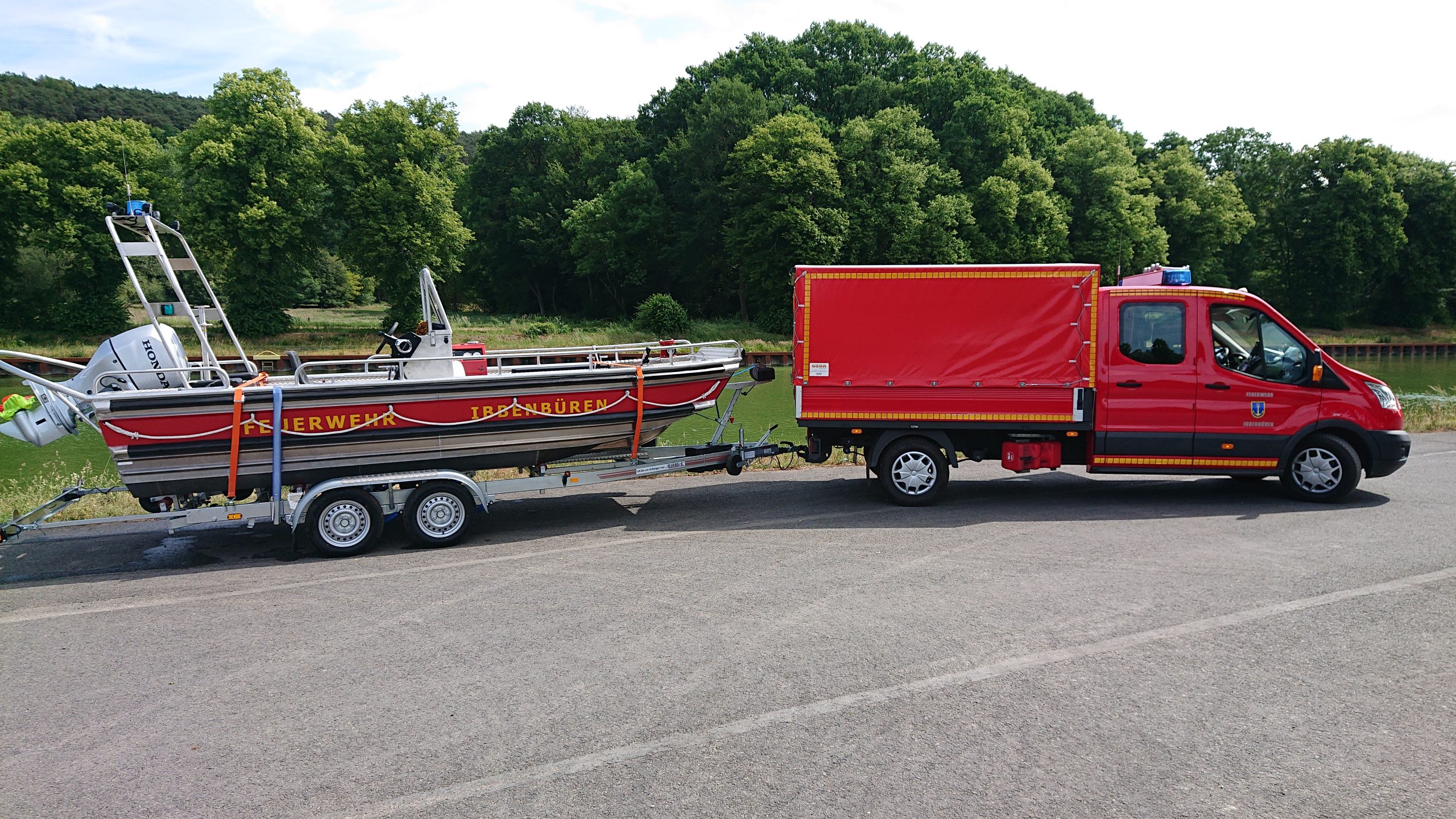 Ein MTF bringt das RTB 2, welches auf einen Trailer verlastet ist, zur Einsatzstelle.