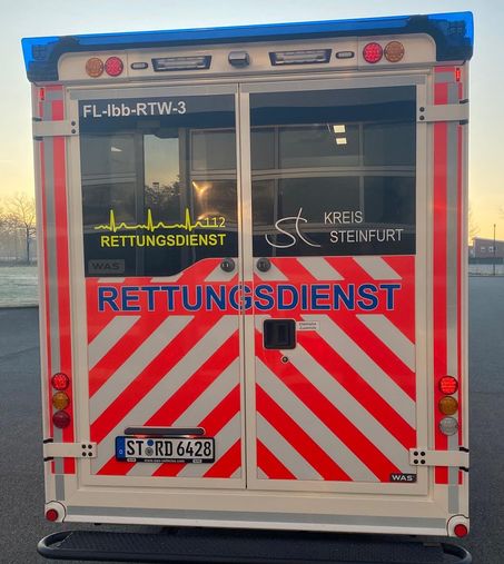 Auf den Rettungswagen werden alle für einen Notfall nötigen Gerätschaften und Medikamente in ausreichender Menge vorgehalten.