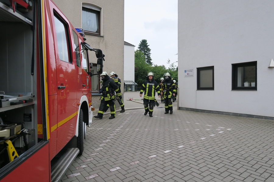 Ein Trupp vom HLF20-1 ging unter schwerem Atemschutz in die betroffene Wohnung im 2. Obergeschoss vor und konnte dort einen Kleinbrand in der Küche schnell löschen. Es waren keine Personen in der Wohnung.