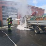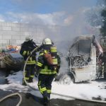 Durch das schnelle Eingreifen der Feuerwehr konnte ein übergreifen der Flammen auf eine Lagerhalle verhindert werden. Die Einsatzstelle wurde der Polizei übergeben.