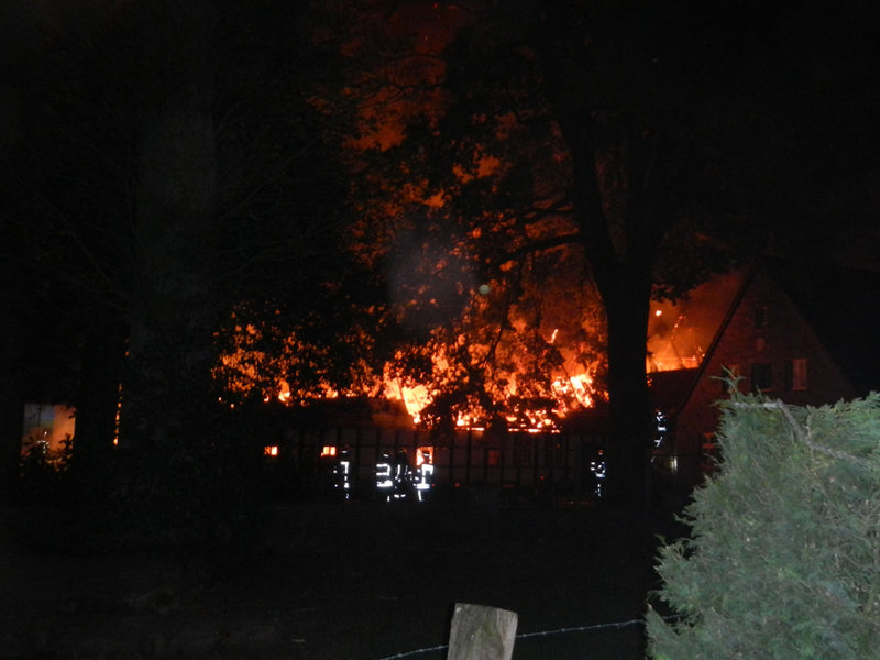 Ein Feuerwehrmann, der privat auf dem Heimweg von der benachbarten Diskothek das Feuer bemerkt hatte, alarmierte die Feuerwehr und die fünf Bewohner des angrenzenden Wohnhauses, so dass diese unverletzt ins Freie gelangten. Sie wurden später vom Rettungsdienst betreut. Weitere Personen waren nicht in Gefahr. Alle vier Rinder des Hofes konnten rechtzeitig von den Bewohnern aus der Scheune befreit und auf eine Wiese getrieben werden.