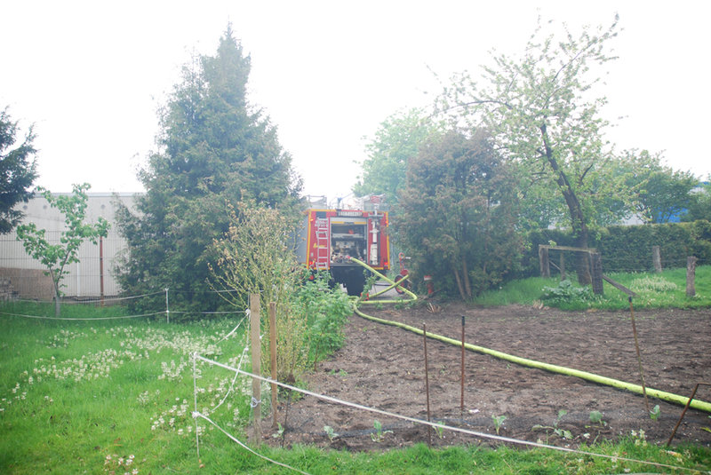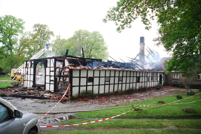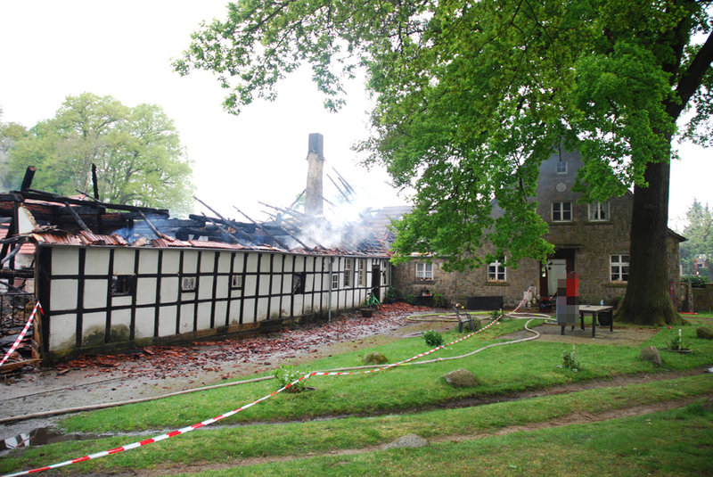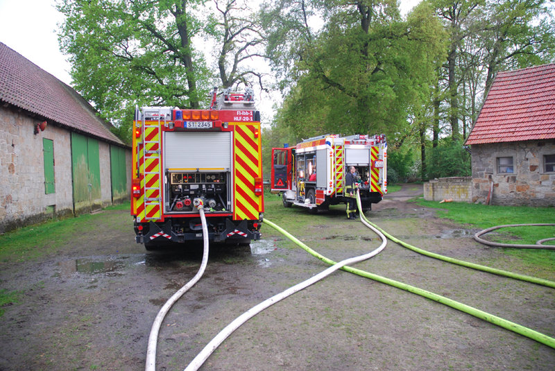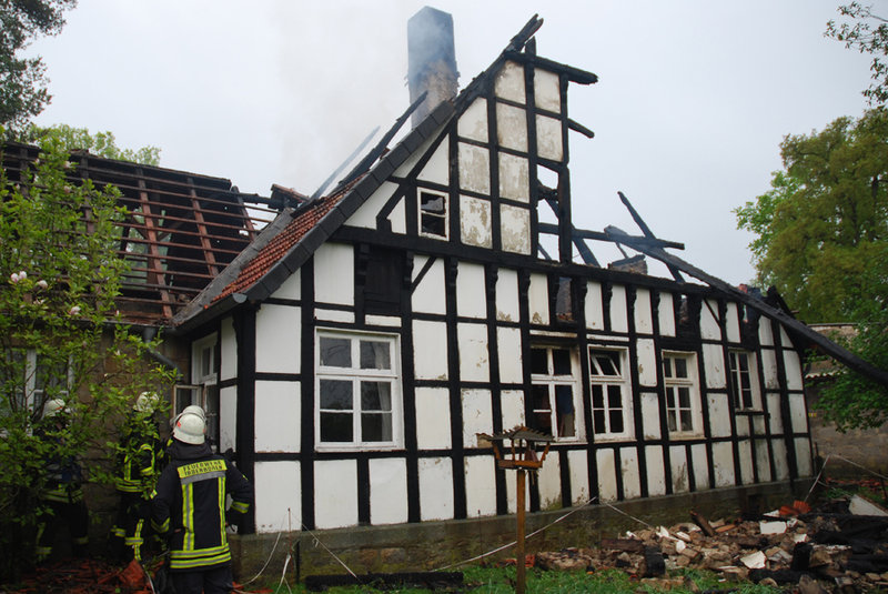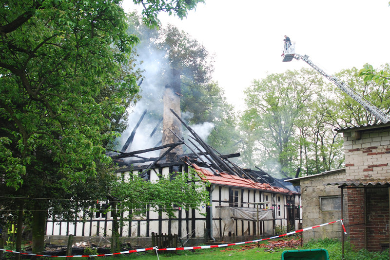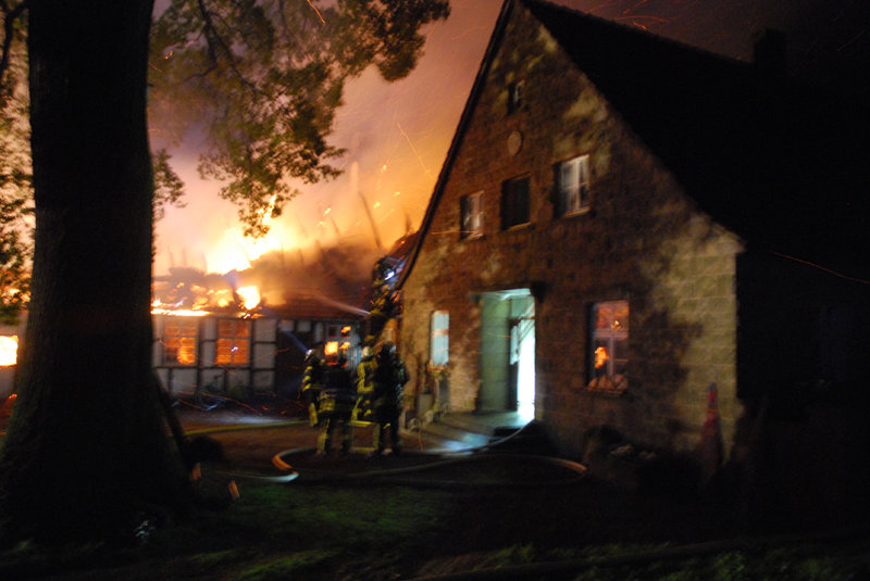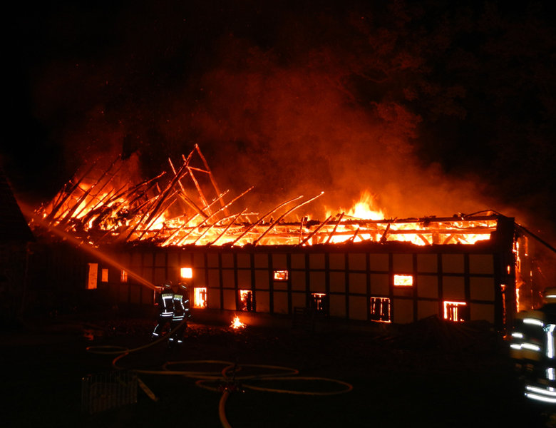 Als Löschmaßnahmen wurde zunächst das angrenzende Wohnhaus durch eine Riegelstellung geschützt, so dass das Feuer auf die in Fachwerkbauweise errichtete, über 200 Jahre alte Scheune begrenzt blieb. Diese brannte allerdings sehr rasch, trotz des Einsatzes von vier C-, einem B-Rohr und dem Werfer der Drehleiter vollkommen aus.