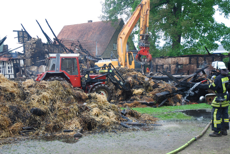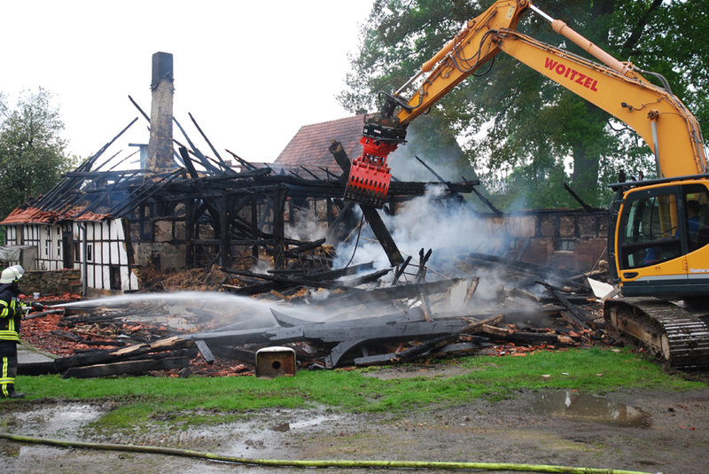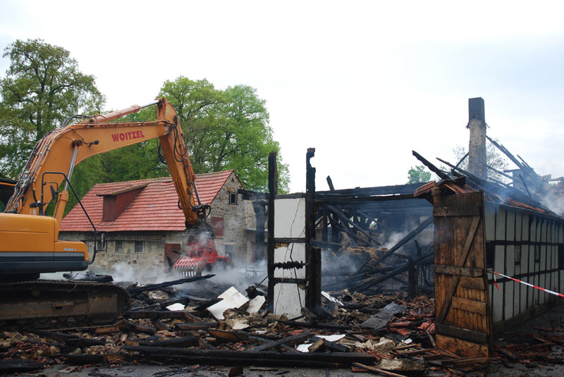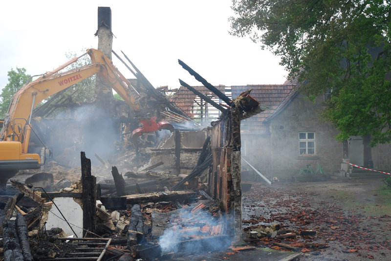 Durch eine Fachfirma wurde anschließend mit einem Bagger die Brandstelle geräumt, um die Gefahr herabstürzender Trümmer zu beseitigen und um ein vollständiges Ablöschen zu ermöglichen.