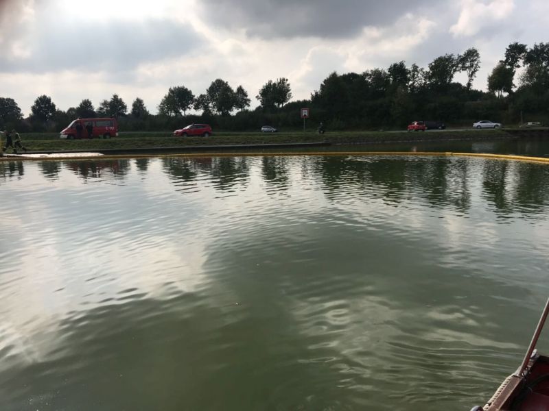 Eingesetzte Fahrzeuge: KdoW-2, WLF-26 mit AB- Öl Gewässer, MTF-2 mit MZB