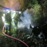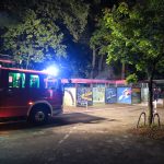 Einsatzbericht: Der Dienstbetrieb und die Löschzüge Stadtmitte 2 und 1 wurden in der Nacht von Samstag auf Sonntag zu einem Brand am Johannes-Kepler-Gymnasium alarmiert. An der Einsatzstelle brannten vier Papier- und Restmüllcontainer in voller Ausdehnung. Ein weiterer wurde durch das Feuer beschädigt. Angrenzendes Unterholz und Bäume waren auch betroffen.