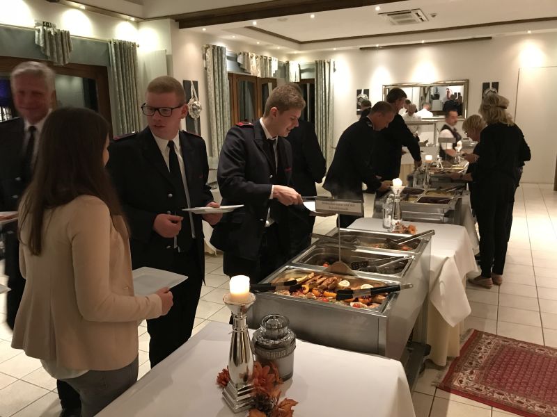 Am Samstagabend fand das traditionelle Winterfest der Feuerwehr Ibbenbüren mit allen vier Löschzügen bei „Mutter Bahr“ im Ortsteil Uffeln statt. Der Leiter der Feuerwehr Ibbenbüren, Karl-Heinz Rolf, eröffnete die Feierlichkeit mit einer kurzen Rede, in der er sich bei den Kameradinnen und Kameraden für die im vergangenen Jahr geleistete Arbeit bei Einsätzen und Übungen, sowie auch für das Verständnis der Partnerinnen und Partner der Feuerwehrleute für diesen zeitlichen Aufwand bedankte. Der Name „Winterfest“ sei im Übrigen vielleicht auch wegen des frühen Termins in diesem Jahr überdenkenswürdig. Er wünschte allen Anwesenden einen schönen Abend eröffnete im Anschluss das Buffet.