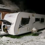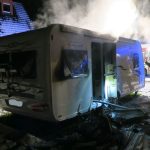 Einsatzbericht: Am frühen Montagmorgen wurden der Dienstbetrieb und der Löschzug 1 zu einem Fahrzeugbrand gerufen. Bei Eintreffen der Kräfte stand ein Wohnwagen in Flammen.