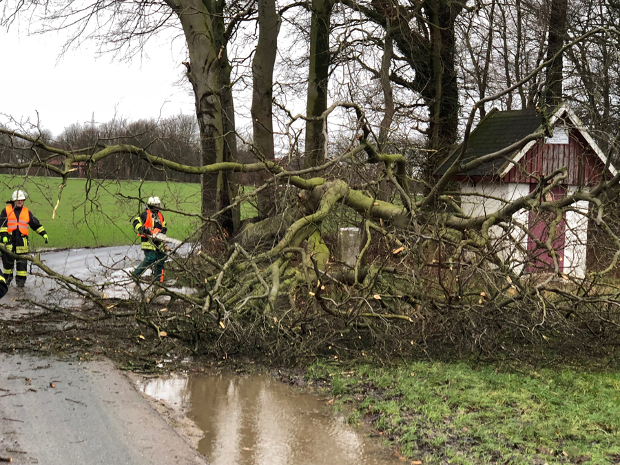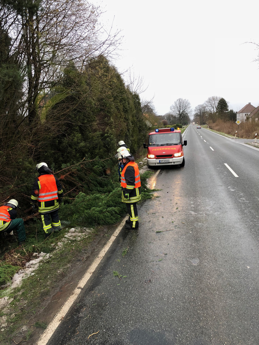 An zahlreichen anderen Einsatzstellen in allen Ortsteilen wurden Verkehrsgefährdungen beseitigt, in dem etliche umgestürzte Bäume zersägt und von den Straßen geräumt wurden.