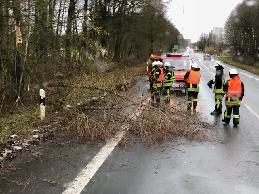 Einsatzbericht: Die Leitstelle des Kreises Steinfurt hat am Donnerstagvormittag die gesamte Feuerwehr Ibbenbüren mit ihren vier Löschzügen und dem hauptamtlichen Dienstbetrieb wegen des Sturmtiefs „Friederike“ alarmiert.
