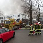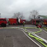 Die Feuerwehr Ibbenbüren unterstützte die Arbeiten mit der DLK23 und dem TLF4000 in der direkten Brandbekämpfung sowie mit dem SW2000 und weiteren Kräften bei der Wasserversorgung.