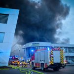 In Saerbeck stand eine Lagerhalle eines kunststoffverarbeitenden Betriebes im Vollbrand. Es waren rund 300 Kameradinnen und Kameraden der Feuerwehren, des Rettungsdienstes, der Polizei und Einheiten des DRK im Einsatz.