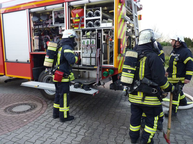 Da sich keine Personen im Gebäude befanden, konnte direkt mit der Brandbekämpfung begonnen werden. Ein Trupp ging unter Atemschutz mit einem C-Rohr in das Gebäude vor. Um eine Ausbreitung des Rauches auf die weiteren Räume der Wohnung zu verhindern, wurde ein Rauchschutzvorhang im Bereich der Küchentür gesetzt.