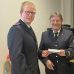 Der Leiter der Gasschutzwehr der RAG Anthrazit Ibbenbüren Franz-Josef Neuhaus überbrachte die Grüße der Geschäftsleitung der RAG. Bekanntlich endet in diesem Jahr der Bergbau in Ibbenbüren und so stehen für die nächste Zeit Termine an, in denen die Feuerwehr Ibbenbüren gemeinsam mit der Gasschutzwehr Orts- und Sachkenntnis für das Gelände der bald ehemaligen Zeche bekommen wird. Auch in diesem Jahr konnte er einen Scheck für die Jugendarbeit an den Leiter der Jugendfeuerwehr Bastian Siebelmeyer überreichen, was er gerne tat.