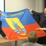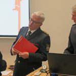 Passend dazu gab es noch einen kurzen Gruß des Leiters der Feuerwehr Wangerooge, Torsten Stumpf, der erstmalig mit einer Abordnung in Ibbenbüren war. Er lobte das gute partnerschaftliche Verhältnis der beiden Wehren und überreichte mit launigen Worten eine Flagge der Feuerwehr Wangerooge, die zukünftig gehisst werden dürfe, wenn er wieder in Ibbenbüren sei.