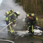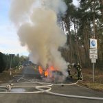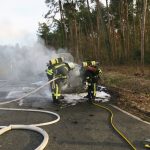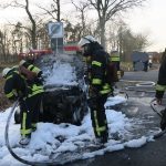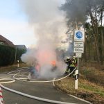 Im Bereich des „Schierloher Mühlenweg“ stand, beim Eintreffen der Feuerwehr, ein Fahrzeug in Vollbrand. Ein Trupp unter schweren Atemschutz löschte das Feuer erst mit einem C-Rohr und im weiteren Verlauf mit einer Schaumpistole.