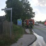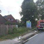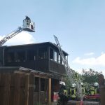 An der Einsatzstelle war es bei einem Mehrfamilienhaus im Bereich einer hölzernen Dachkonstruktion, möglicherweise nach Abdichtungsarbeiten, zu einem Brand gekommen. Es befanden sich keine Personen mehr im Gebäude. Das Feuer konnte durch einen Trupp unter PA schnell unter Kontrolle gebracht und die offenen Flammen gelöscht werden.