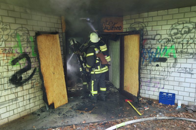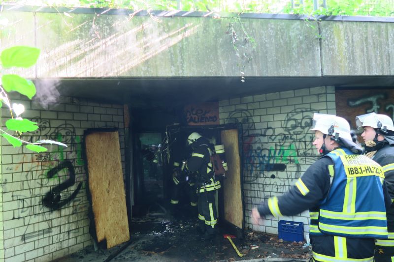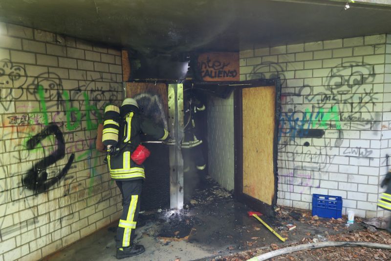 Im Außenbereich der Halle brannte eine Holztür. Durch die Feuerwehr wurde ein Trupp unter PA mit C-Hohlstrahlrohr eingesetzt. Das Feuer wurde schnell gelöscht und ein Übergreifen des Feuers auf weitere Gebäudeteile verhindert.