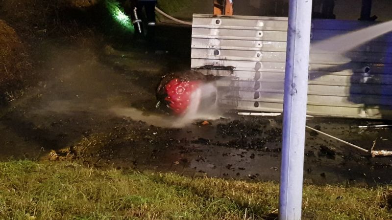 Vor Ort brannte ein Verkaufsstand für Erdbeeren in voller Ausdehnung. Der Brand war im Begriff auf die benachbarte Vegetation und ein Werbeschild überzugreifen.