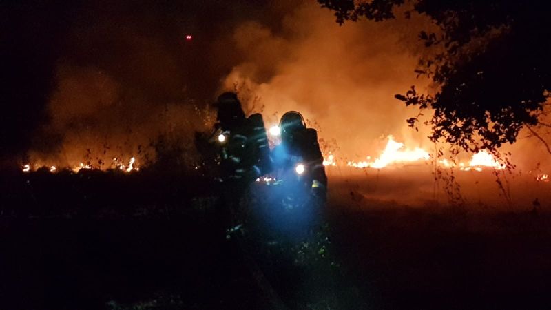 Nachdem das Feuer unter Kontrolle war, konnten die Löschzüge Stadtmitte 1 und 2 wieder einrücken. Die Einsatzleitung hatte die Feuerwehr Saerbeck übernommen und gemeinsam mit dem Löschzug Dörenthe wurden noch weitere Nachlöscharbeiten durchgeführt.