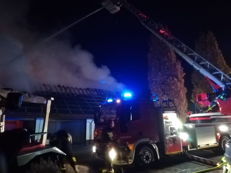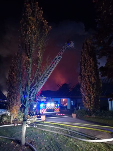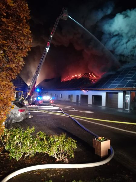 In Mettingen war an der Nierenburger Straße ein Bauernhof in Brand geraten. Die Feuerwehr Ibbenbüren unterstützte die Nachbarwehr mit der DLK23, einem TLF4000 und dem SW2000.