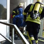 Erneut wurde ein Kellerbrand dargestellt. Bei dieser Übung war der Brand in einem Mehrfamilienhaus ausgebrochen und mehrere Personen mussten aus dem Gebäude gerettet werden. Mehrere Trupps gingen unter Atemschutz zu Menschenrettung vor und konnten alle Personen aus dem Gebäude retten. Auch diese Übung endete mit einer Nachbesprechung.