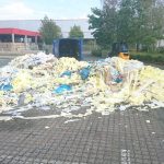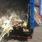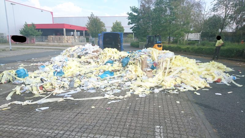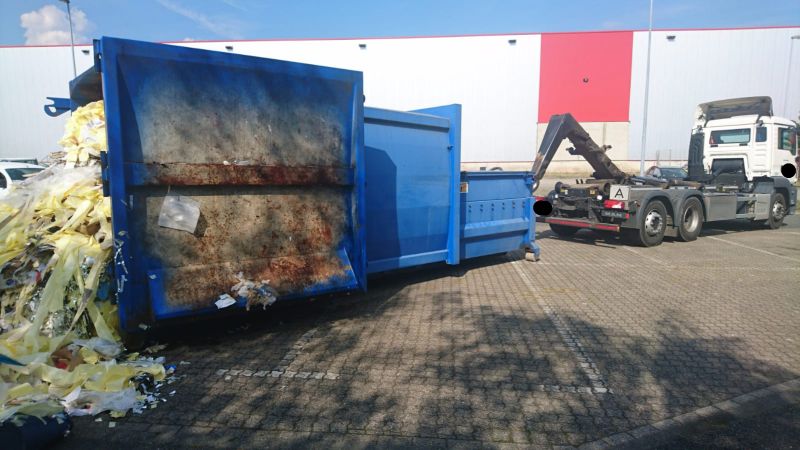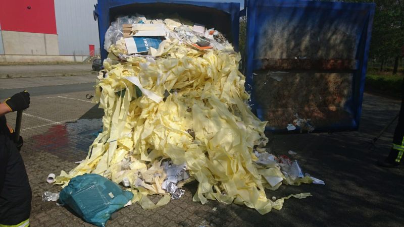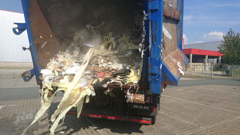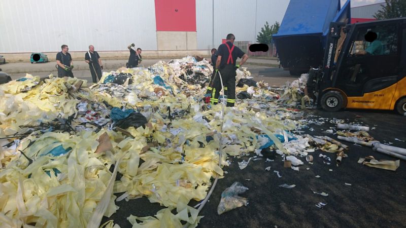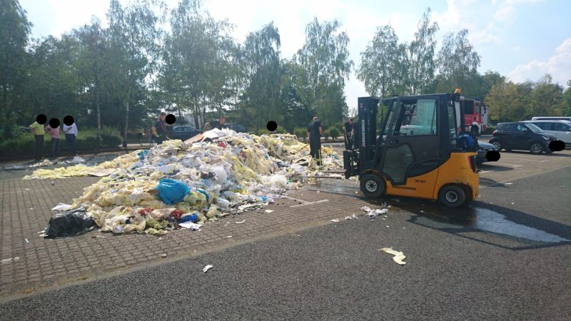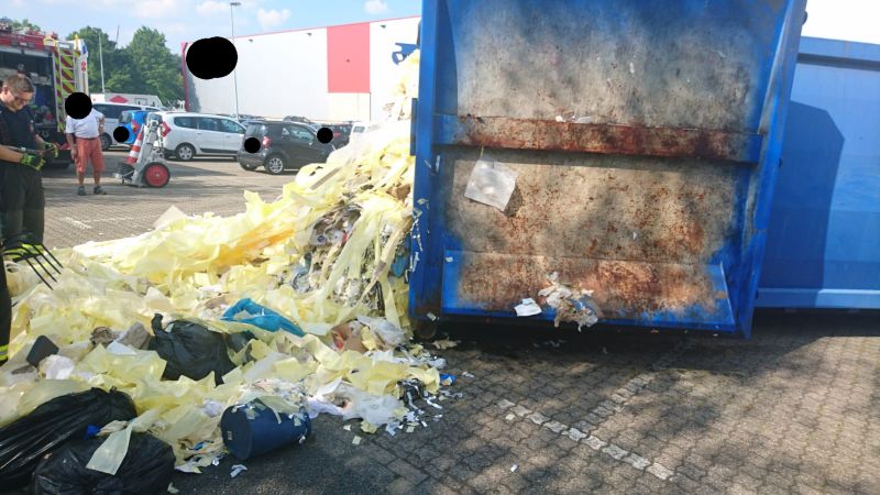 Die Müllpresse wurde auf einen Parkplatz ausgeleert, um die Glutnester ablöschen zu können.