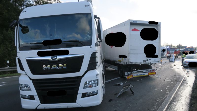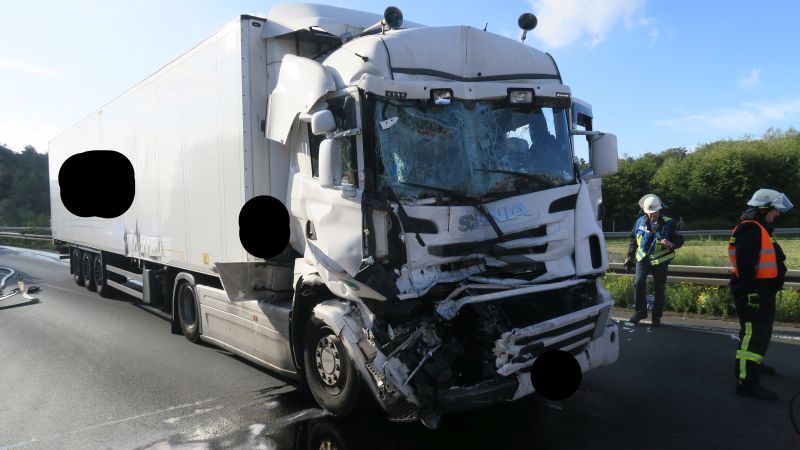 An der Einsatzstelle war es zu einem Auffahrunfall, zwischen zwei LKW, gekommen. Nach einer ersten Erkundung konnte festgestellt werden, dass keine Person in ihrem Fahrzeug eingeklemmt war.