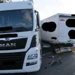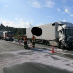 Die Feuerwehr sicherte die Einsatzstelle gegen Brandgefahr. Die LKW wurden von der Feuerwehr gegen wegrollen gesichert.