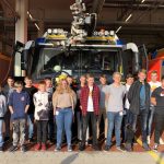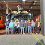 Danach ging es für uns raus auf das Rollfeld. Aber natürlich mussten wir erst durch den Sicherheitscheck mit zahlreichen „Das darf ich nicht mit mir führen!“. Danach fuhren wir mit einem Bus Richtung Flughafenfeuerwehr. Diese war aber leider nicht da. Wie sich herrausstellte, hatten die eine Übung. Nach reichlichem Herumtelefonieren kam dann die Zulassung, dass wir zum Übungsplatz fahren durften. Doch auf dem Weg dahin kamen uns die Einsatzfahrzeuge entgegen. Unsere Busfahrerin „Schatzi oder Schätzelchen“ fuhr uns wieder zurück zur Werkfeuerwehr. Als wir dort ankamen, waren alle Stellplätze wieder besetzt. Nach reichlichen und tollen Fotos fuhren wir Richtung Terminals und Vorfeld 1. Highlights dieser Fahrt waren, dass wir nun alle die Erfahrung gemacht haben ein Flugzeug einzuparken, dass Piloten und Flughafenmitarbeiter begeisterte Winker sind, unser Führungsleiter uns bewiesen hat, dass alle zurückwinken, er so gut wie alle kennt und dass er das Links und Rechts beherrscht. Danach fuhren wir Slalom durch die einzelnen Flugzeuge in Richtung Werkstätten und Privatjets. Es stellte sich heraus, dass Otto Waalkes dort einen Hubschrauber stehen hat. Die Führung wurde durch den Start einer Boing 777 der Emirates Airlines und einer Quizfrage, wo man Honig gewinnen konnte, beendet.
