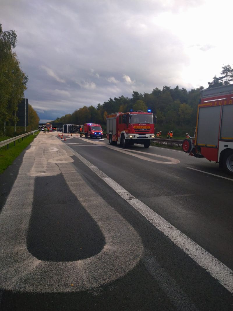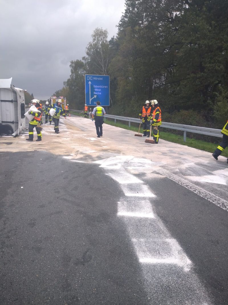 An der Einsatzstelle war ein LKW umgekippt und blockierte die gesamte Autobahn zwischen den Anschlussstellen Ibbenbüren und Ibbenbüren-West.