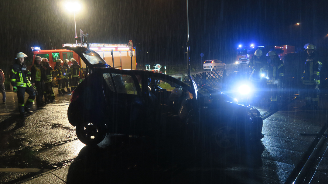 Die Feuerwehr leitete die technische Rettung der eingeklemmten Person ein. Ein zweifacher Brandschutz wurde sichergestellt. Nach der Rettung aus dem PKW wurde die Person dem Rettungsdienst übergeben.