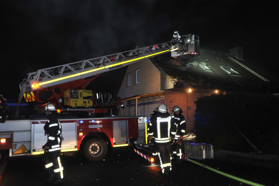 Vor Ort wurde festgestellt, dass es in einer Einliegerwohnung im Keller eines Hauses zu einer Explosion gekommen war. Durch die Explosion waren im ganzen Haus so wesentliche Schäden entstanden, dass seine Standsicherheit erheblich gefährdet war. Im Kellerbereich des Hauses brannte es.