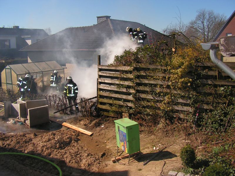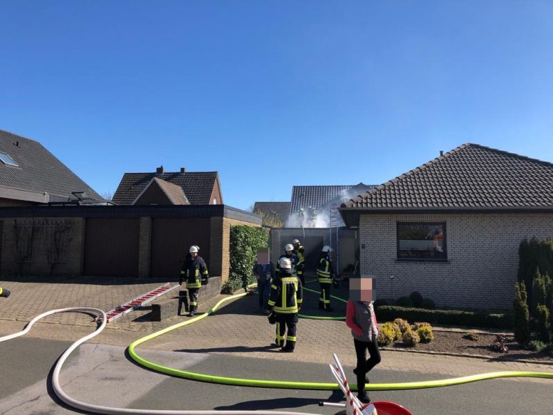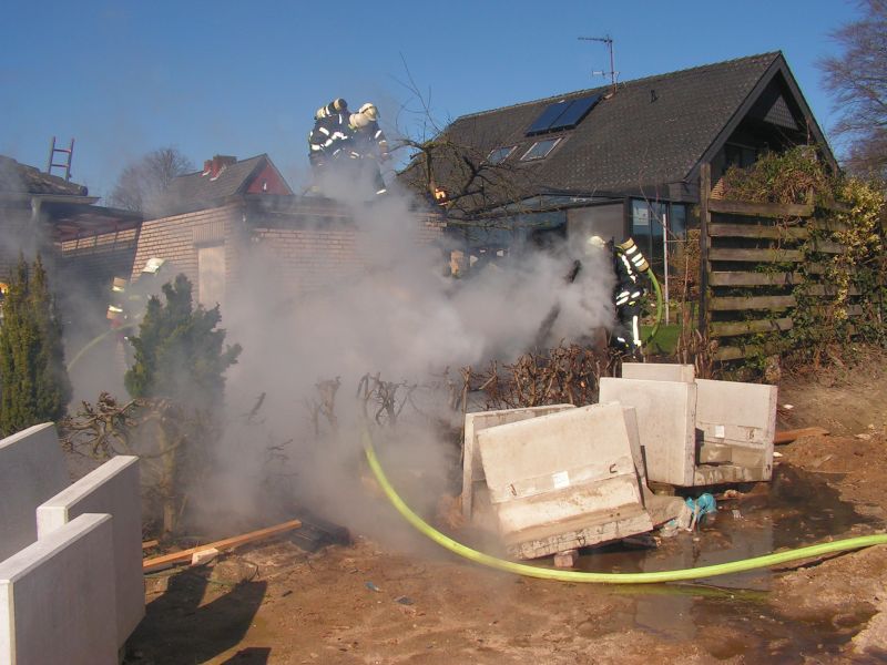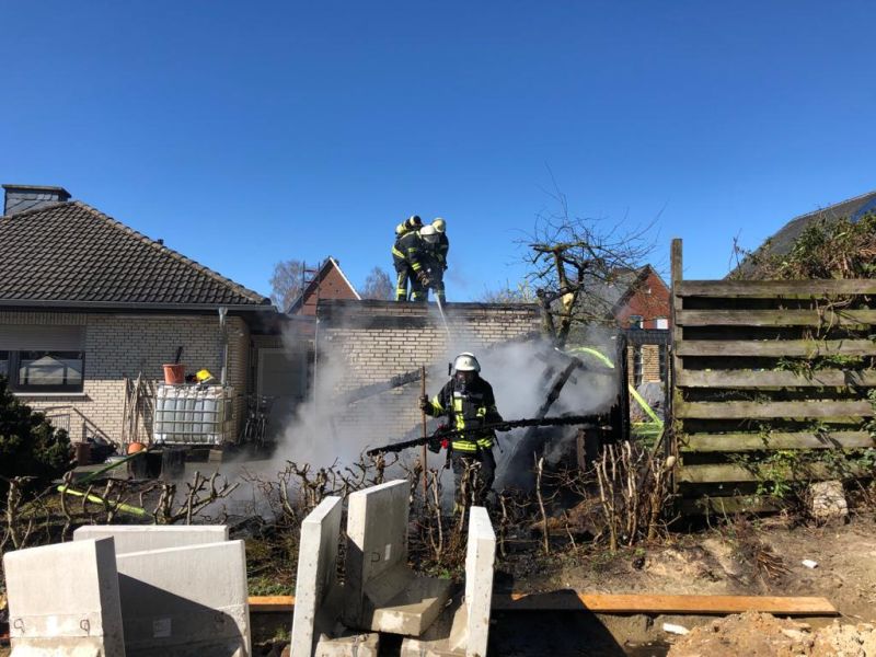 Durch den schnellen und massiven Löscheinsatz konnte ein Übergreifen auf die angrenzende Garage und das Wohngebäude verhindert werden.