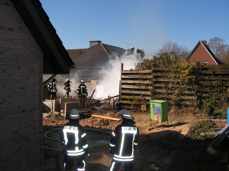 Die ersteintreffenden Kräfte fanden einen in Vollbrand stehenden Unterstand mit Kaminholz vor. Im Laufe des Einsatzes gingen insgesamt drei Trupps, unter umluftunabhängigem Atemschutz mit je einem C-Hohlstrahlrohr zur Brandbekämpfung vor.