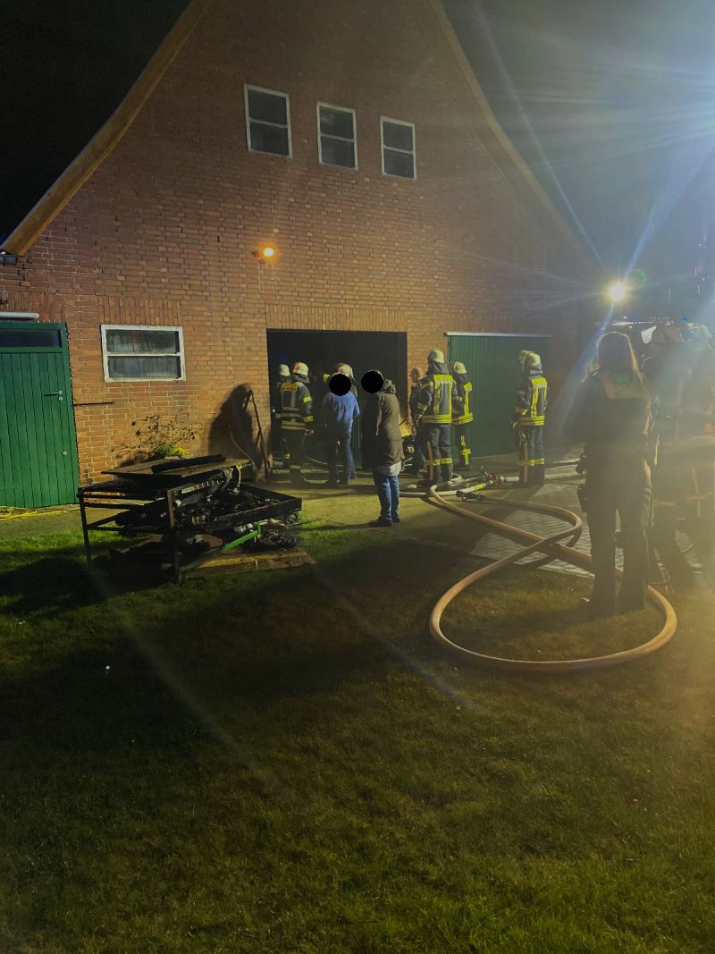 Der Besitzer des Hofes hatte mit einem Gartenschlauch schon eigene, erfolgreiche Löschmaßnahmen eingeleitet.
