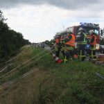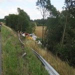 Von der Feuerwehr war parallel der Brandschutz an der Einatzstelle sichergestellt worden. U.a. wegen der Schäden an der Leitplanke wurde der Straßenbaulastträger angefordert.