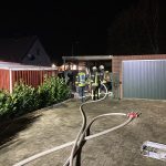 Dort hatten Anwohner bereits damit begonnen mehrere brennende Mülltonnen unter einem Carport zu löschen. Ein Trupp unter PA mit C-Rohr löschte schließlich den Brand.