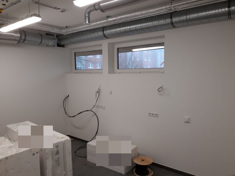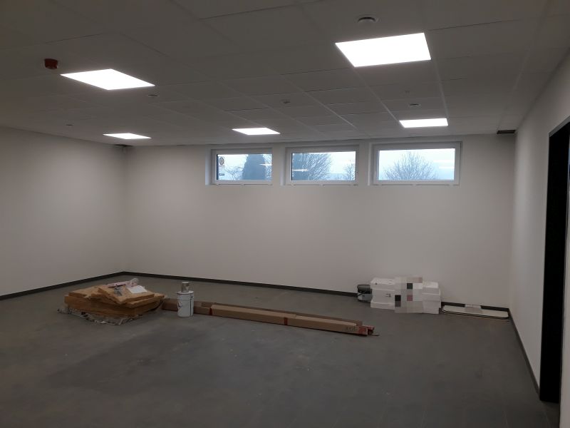 Im nächsten Schritt wird der Schulungsraum gestrichen und im Anschluss die Elektroinstallation abgeschlossen.