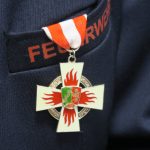 Das Feuerwehr-Ehrenzeichen des Landes NRW in Gold, für 35 Jahre aktiven Dienst im Feuerschutz, erhalten: