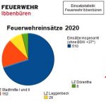Insgesamt verzeichnet die Feuerwehr Ibbenbüren für 2020 547 Einsätze, davon 152 mit den beiden Löschzügen Stadtmitte, 28 mit dem Löschzug Laggenbeck und 8 mit dem Löschzug Dörenthe. Besondere Einsätze im vergangenen Jahr waren bestimmt die Explosion/Einsturz eines Wohnhauses in der Neujahrsnacht, der Brandeinsatz an der Wilhelmstraße, mit einer offenbar getöteten Person und der Großbrand im Entsorgungsbetrieb Woitzel im Sommer. Der Kohlebunkerbrand (100 Tonnen) im Gewerbegebiet Uffeln, der Brand mit „Person in Gefahr“ im ehemaligen Möbelhaus Keller im Laggenbecker Ortszentrum und auch der ABC-Einsatz auf der BAB A30 mit einem Austritt von Gefahrstoffen auf dem Rastplatz Brockbachtal-Süd bleiben besonders in Erinnerung.