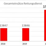 Die Gesamteinsätze des Rettungsdienstes an den Standorten Ibbenbüren und Hopsten belaufen sich für 2020 auf 15.796. Das bedeutet 43,3 Einsätze für den Rettungsdienst pro Tag. Somit ergibt sich ein durchschnittliches Plus von 5,3 Einsätzen mehr pro Tag als im Vorjahr 2019.