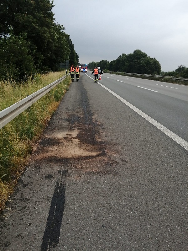 Eine längere Ölspur, auf dem Seitenstreifen der Autobahn, wurde durch die Einsatzkräfte abgesichert.