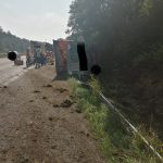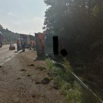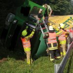 Bei einem verunglückten Lkw vor Ort dann die Feststellung der ersteintreffenden Kräfte, dass keine Person eingeklemmt ist und auch keine Betriebsstoffe auslaufen.