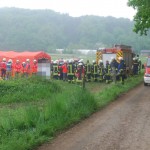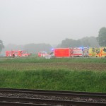 Einsatzbericht: Am Samstagmittag wurde die Feuerwehr Ibbenbüren um 11.34 Uhr mit Vollalarm zu einem Zugunglück an der Velper Straße – Zug gegen Güllefass – alarmiert.