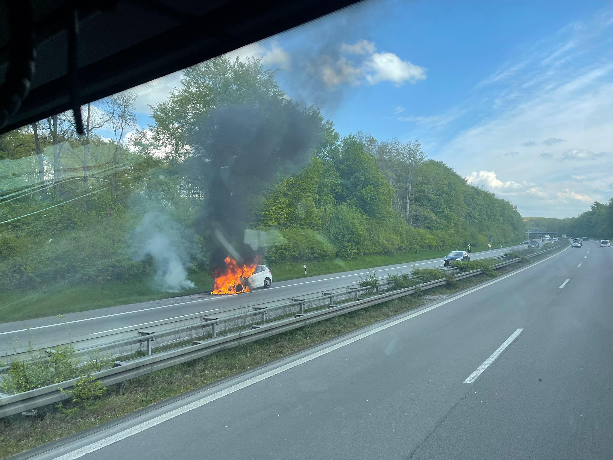 In Fahrtrichtung Holland, vor der Anschlussstelle Laggenbeck, war ein Pkw in Brand geraten. Das Feuer wurde von einem Trupp unter PA gelöscht.