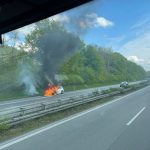 In Fahrtrichtung Holland, vor der Anschlussstelle Laggenbeck, war ein Pkw in Brand geraten. Das Feuer wurde von einem Trupp unter PA gelöscht.