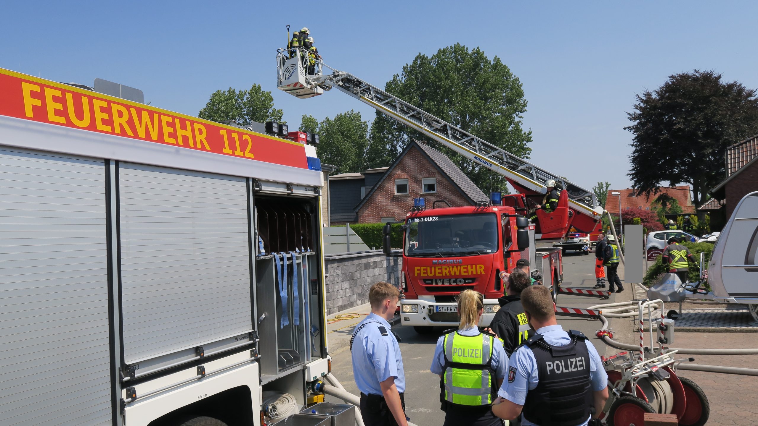 Es brannten die Dachhaut, Dachluken und ein Teil der Photovoltaikanlage. Das Feuer wurde sowohl von der Drehleiter aus, als auch im Innenangriff bekämpft und schließlich gelöscht.