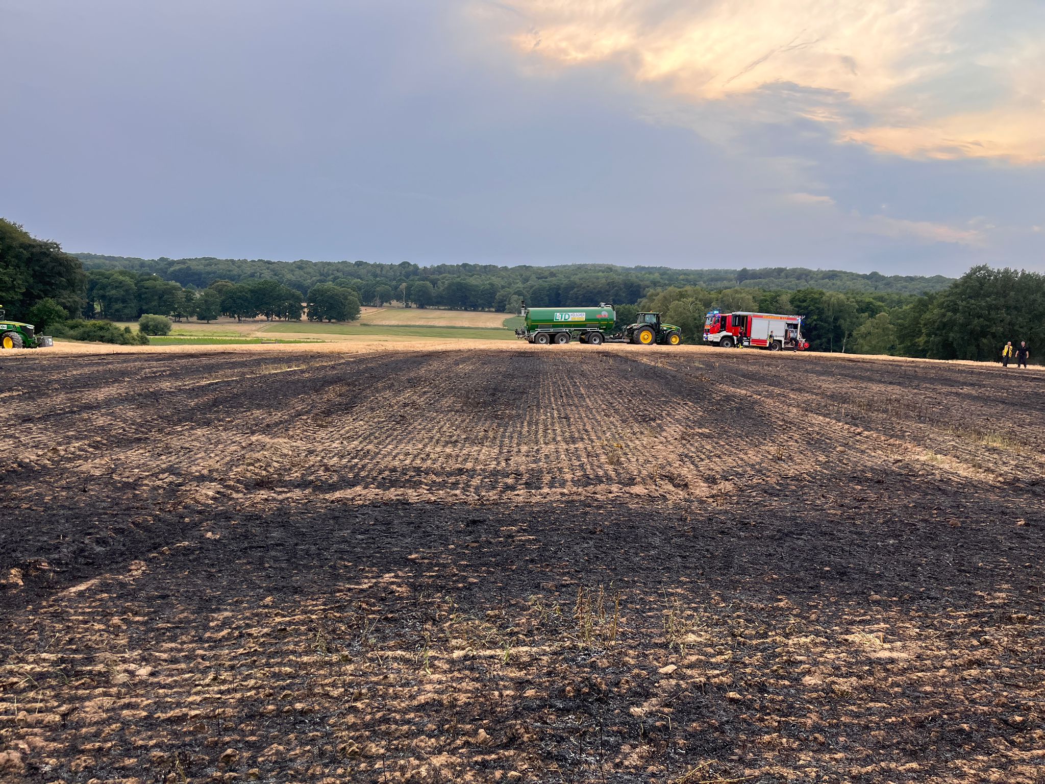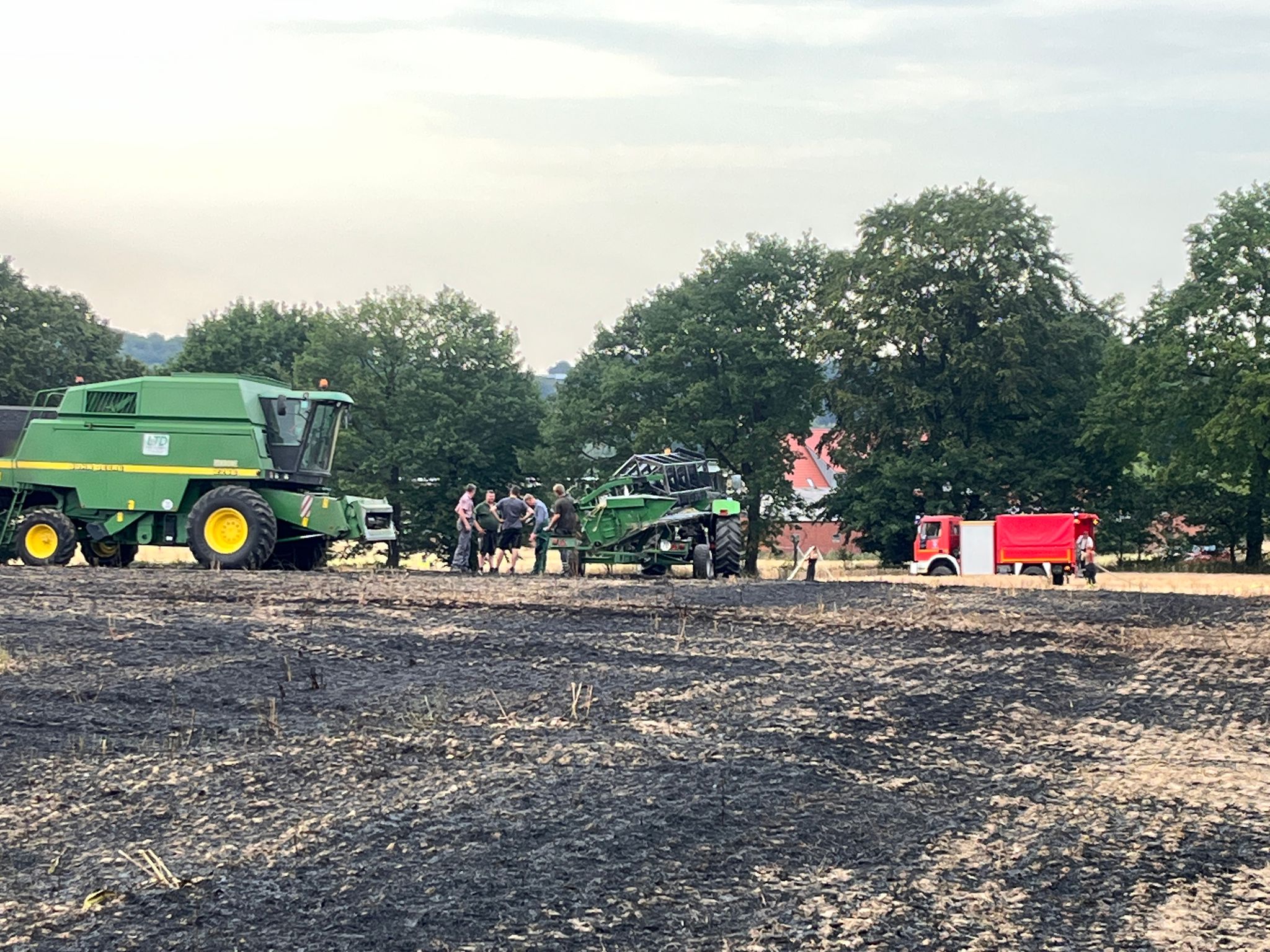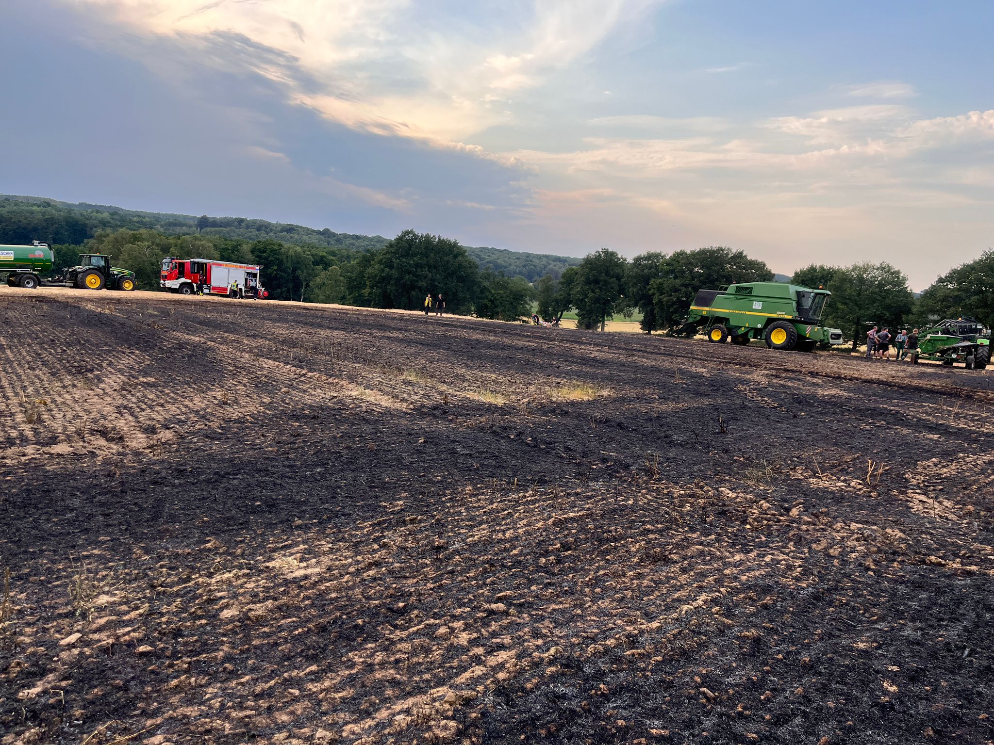 An der Einsatzstelle brannten 1,2 Hektar Stoppelfeld und ein darauf befindlicher Mähdrescher.